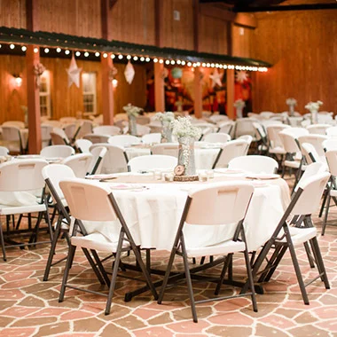 Your ceremony under our gazebo overlooks a quiet lake surrounded by trees. Park like benches on the surrounding patio and lawn accommodate up to 200 people. Feel the breeze and listen to the birds as you walk down our winding path adjacent to a waterfall and trickling stream. Feel free to borrow our shepherd hooks and lanterns to line your path with rustic elegance.